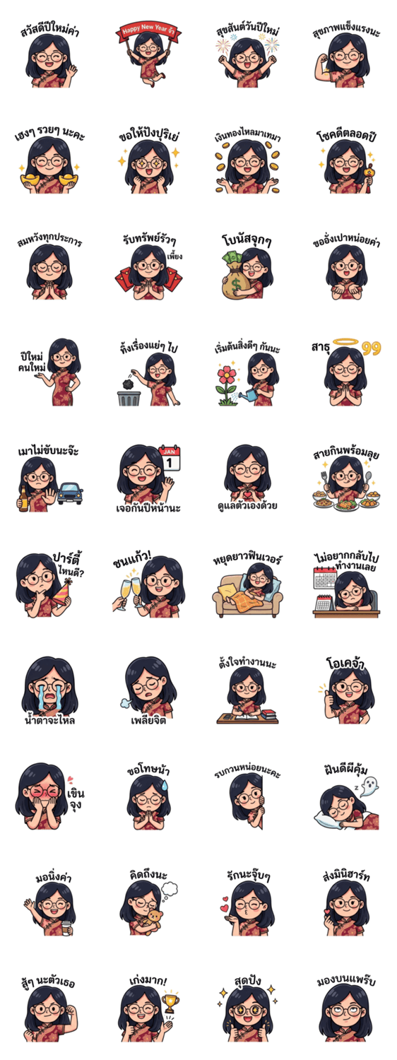 | スタンプ説明 | Girl with Glasses, Happy New Year Happy New Year! Wish you great fortune and wealth. Wishing you huge success! Stay healthy! May money flow in abundance. |