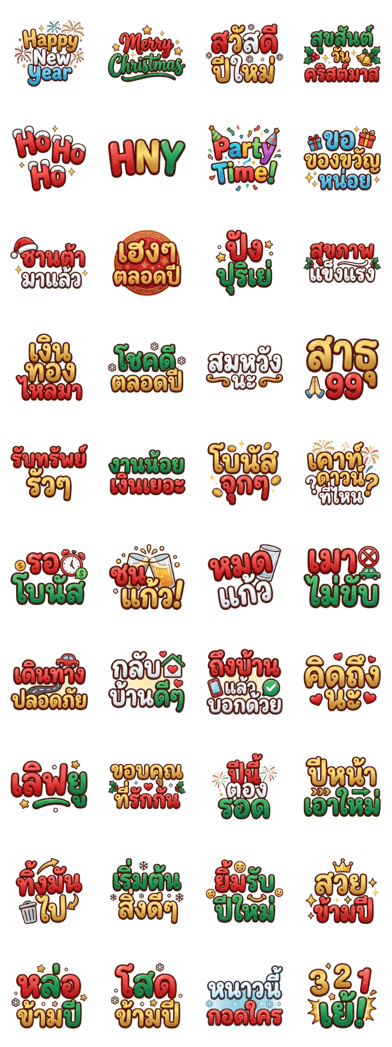 | スタンプ説明 | Merry Christmas / Merry Xmas Happy New Year Hello New Year / Greetings! Happy Christmas / Enjoy Xmas Ho Ho Ho! Gift please! / Where's my gift? / Present time! |