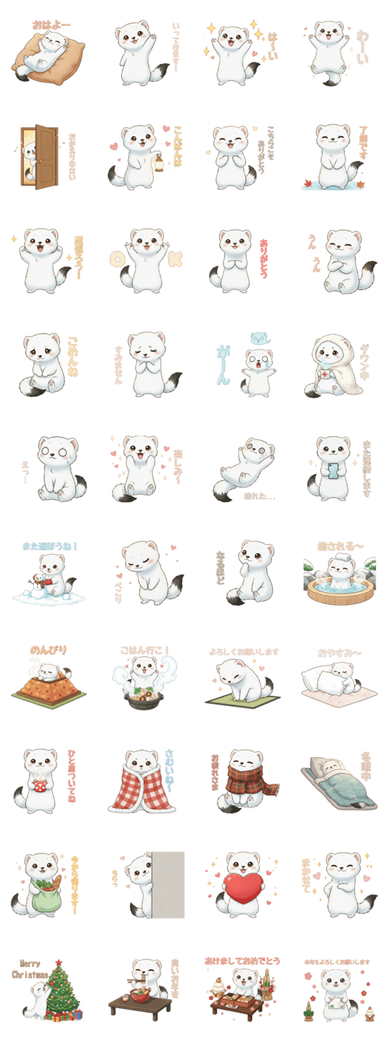 おこじょのほっこりスタンプ!冬の日常、お正月に使いやすい!ずっと使える♪