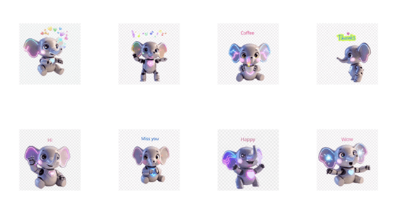 Cute robot baby elephant stickers for everyday chats. Share your feelings with glowing LED animations!