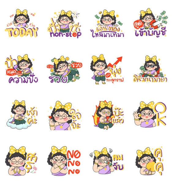 Lucky Money Mascot Clipart - "Kaen Kaew" The Wealthy Thai Girl - Vector Stickers for GoodNotes, Planners, and Social Media