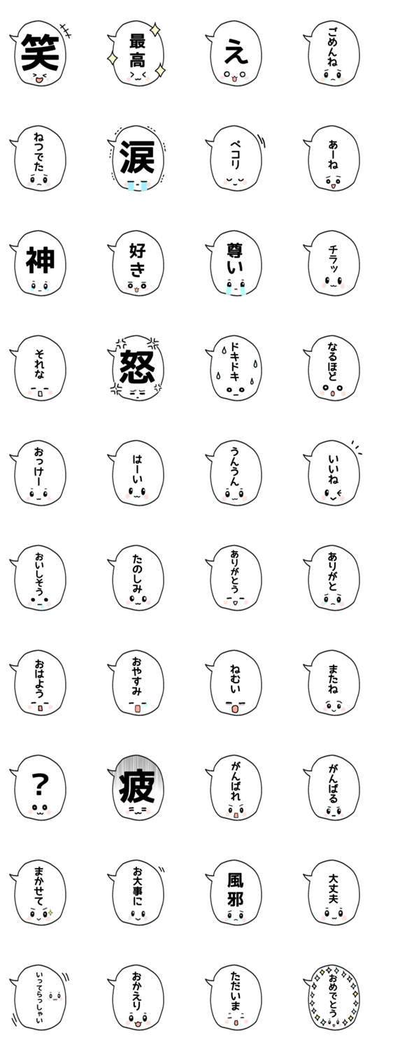 ふきだしちゃん/吹き出しキャラクター/日常会話/毎日使える挨拶/喜怒哀楽/風邪/体調不良/発熱/報告連絡/神/推し活/気持ちを伝える/応援/シンプル可愛い/小学生/中学生/便利