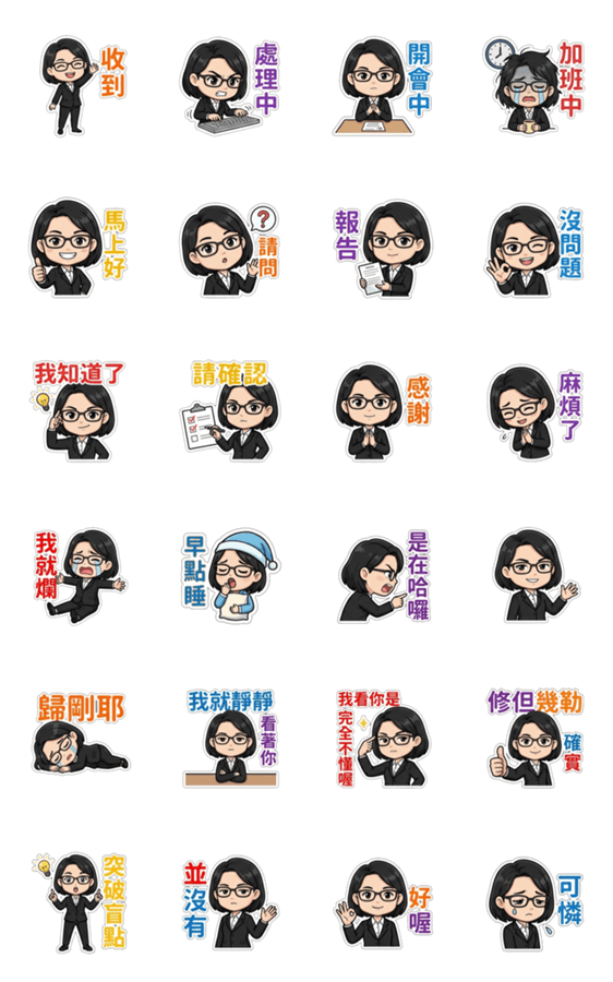 Elevate your professional chats! A set of respectful stickers including "Thank you," "Received," and "Good job" to show your best manners at work.