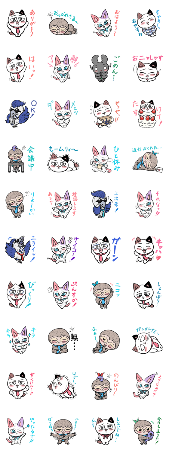 中乃森豊によるマンガ「はたらけもの」のキャラクタースタンプです。学校や仕事に疲れたみなさん、働きたくないケモノたちのかわいいスタンプを送り合い、癒されましょう。