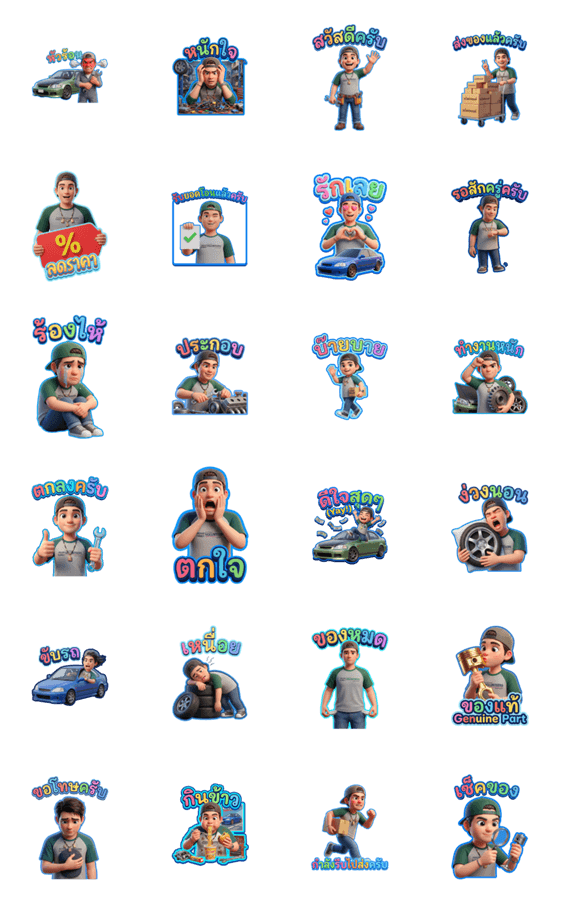 | スタンプ説明 | Fuel your chats with this cool auto parts seller! Perfect stickers for mechanics, gearheads, and garage life enthusiasts. Rev it up These stickers will show up extra large in chats. |