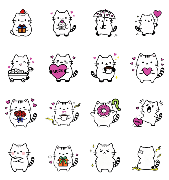 仕事や考え事、ひらめきまで、毎日の気持ちを表現するシンプルでかわいい白猫スタンプ。使いやすい日常シリーズです。