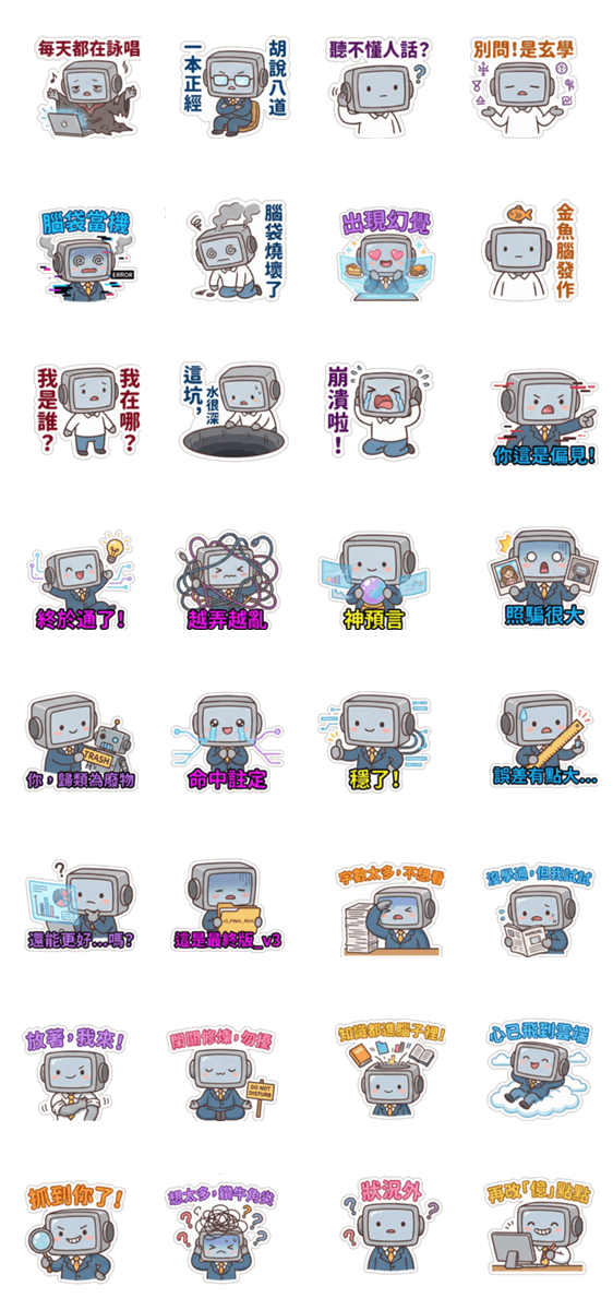 | スタンプ説明 | Meet the cute Screen Head character! This sticker set features their daily life, from hard work to fun times. Perfect for expressing your feelings in any chat! |