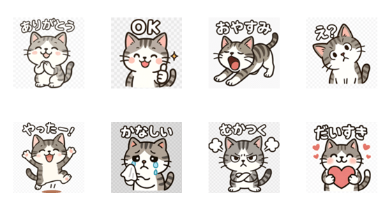 我が家の愛猫「チャチャ」を、シンプルでポップなイラストにデフォルメしました。チャチャのキュートな表情で、毎日のトークを楽しく彩ります。文字なしスタンプ8個入り。