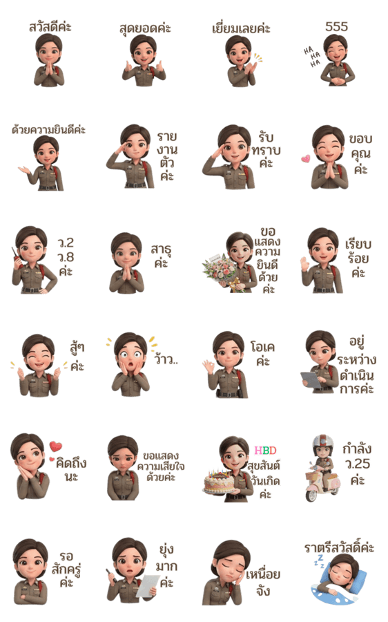 Cute Thai female police stickers, disciplined and never neglecting beauty, conveying police conversational language.