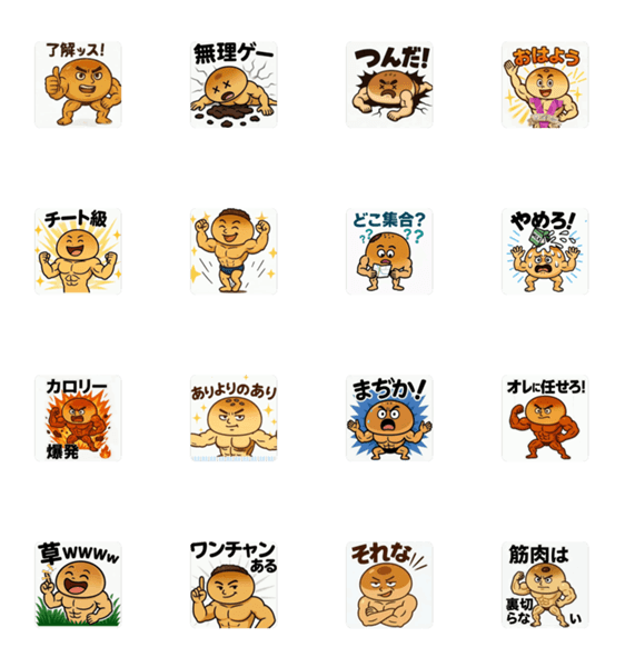 ムキムキな“マッチョあんぱん”が、シュールに日常を盛り上げます。友達との会話にパンチを効かせたい時にどうぞ。