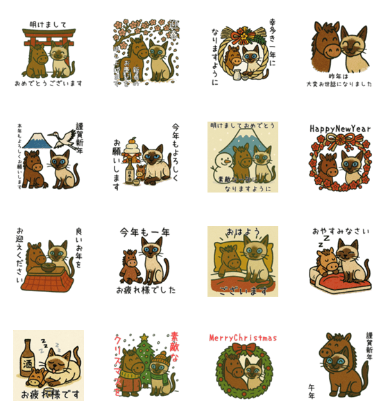 午年♡シャム猫年末年始あいさつスタンプ -LINEスタンプマニア