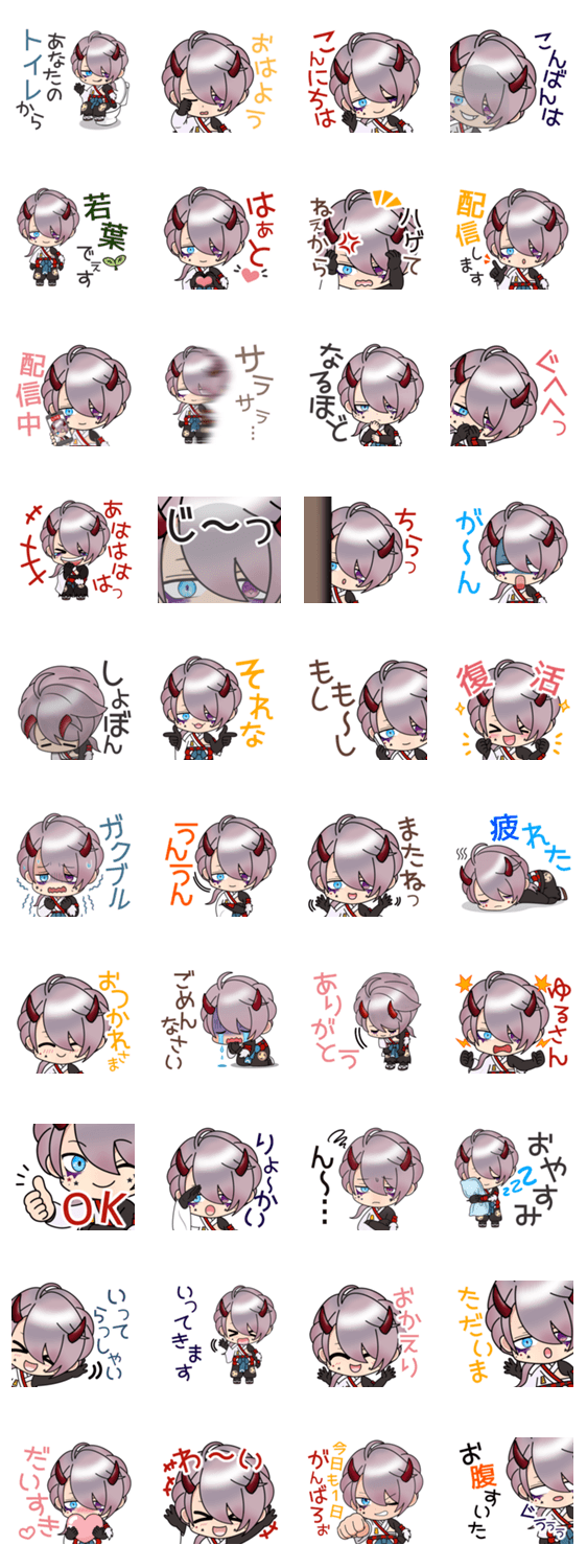 某配信アプリで配信している若葉の百鬼アバターをデフォルメ化して毎日使えるスタンプにしました!