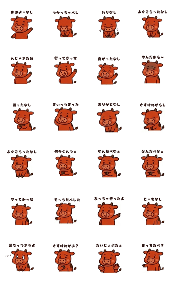 会津の赤べこが、かわいい方言をしゃべる楽しいスタンプを作りました!