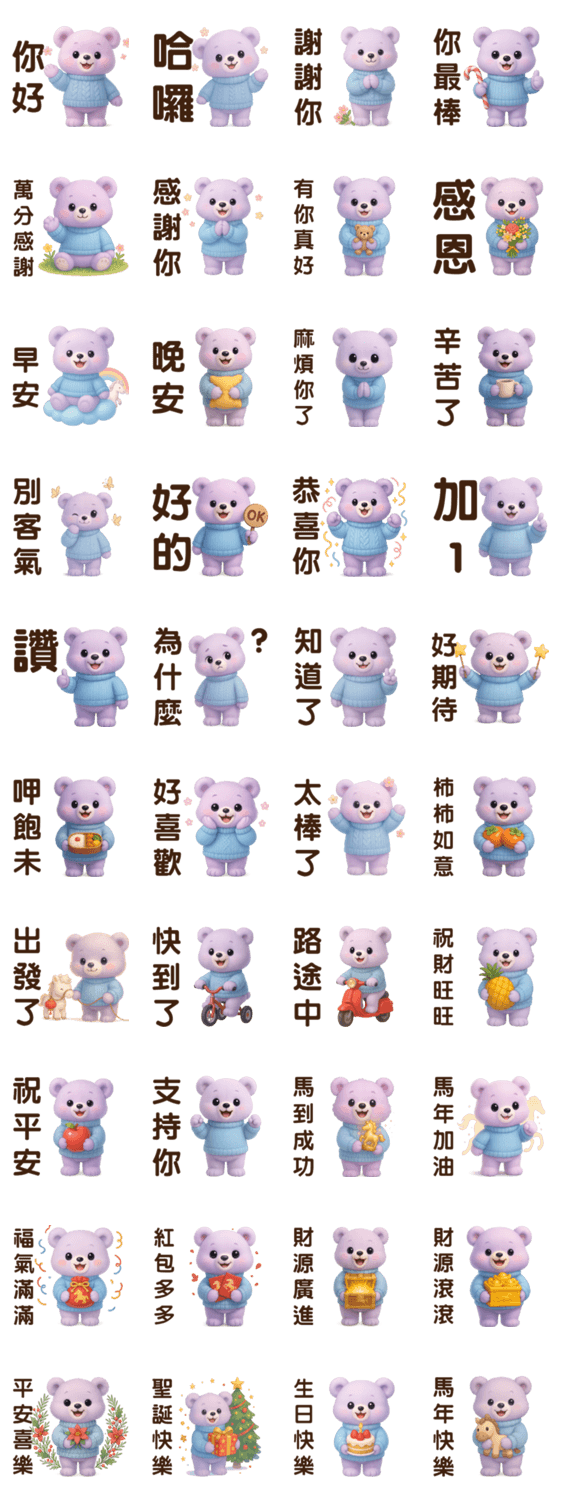 | スタンプ説明 | Cute Purple Bear*Daily Greeting Stickers* |