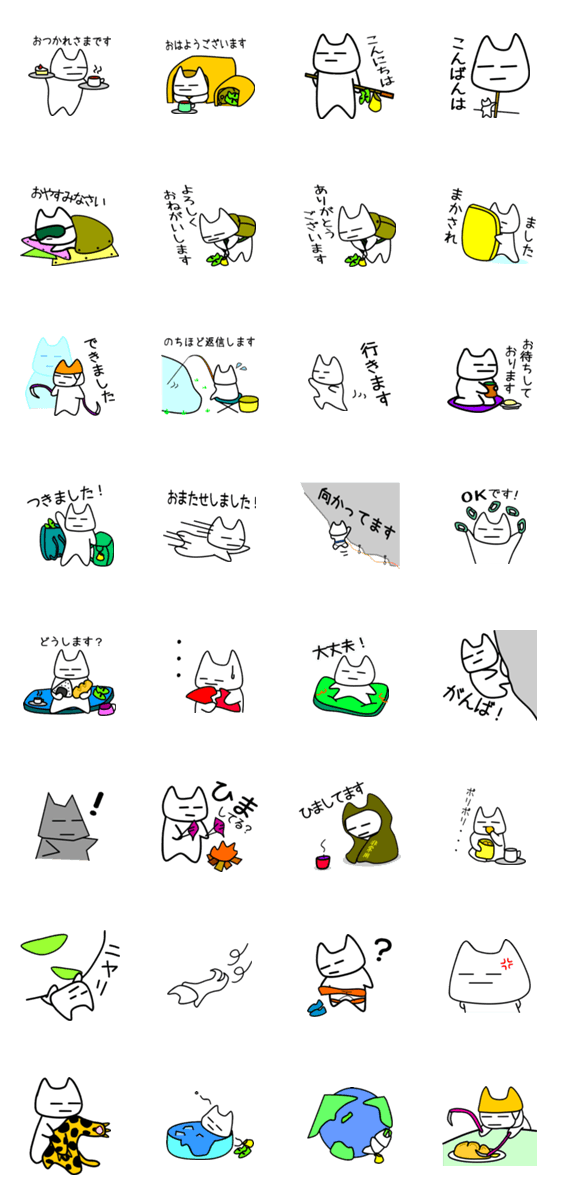 白ネコのあいうえお・・・ってるスタンプ