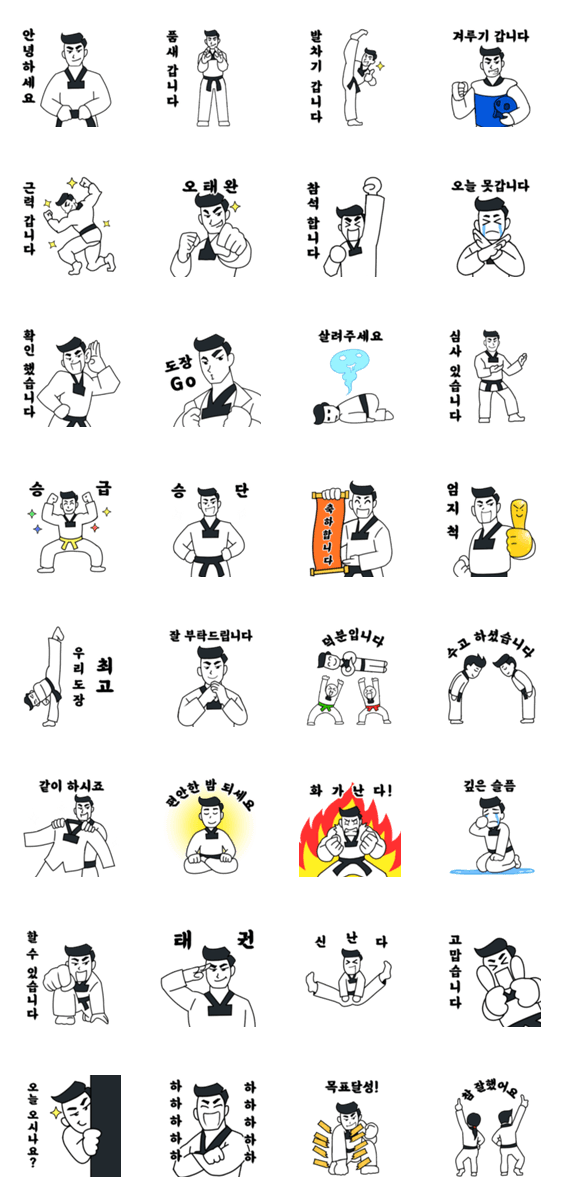 | スタンプ説明 | 韓国語今日のテコンドーの完了の略語であるOh Tawanのアイデア オ・テワン師範と楽しいテコンドーも授業してみてください |