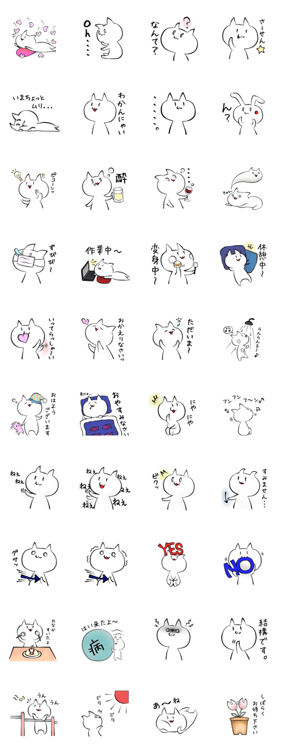 まっしろなねこ「ねこもちさん」のスタンプ。
