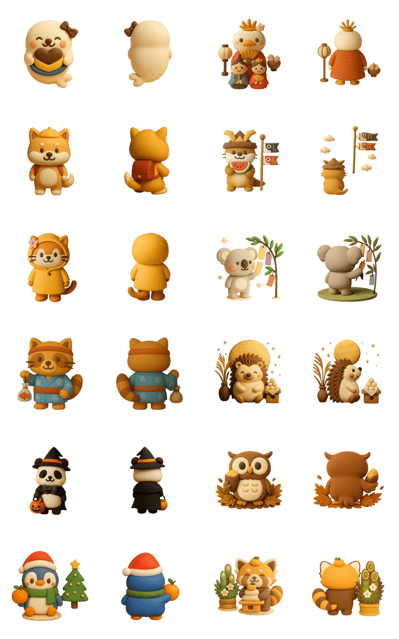 | スタンプ説明 | 紙粘土風のかわいい動物たちが特別コラボ第12弾に登場。 人気の季節モチーフを集めた癒し系デザイン。 一年を通して使いやすい紙粘土動物のスタンプです。 |
