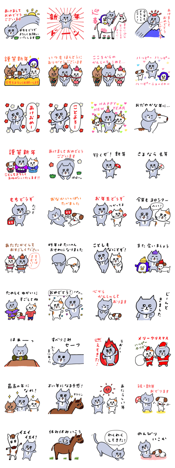 灰色キャットのお正月【2026】 -LINEスタンプマニア