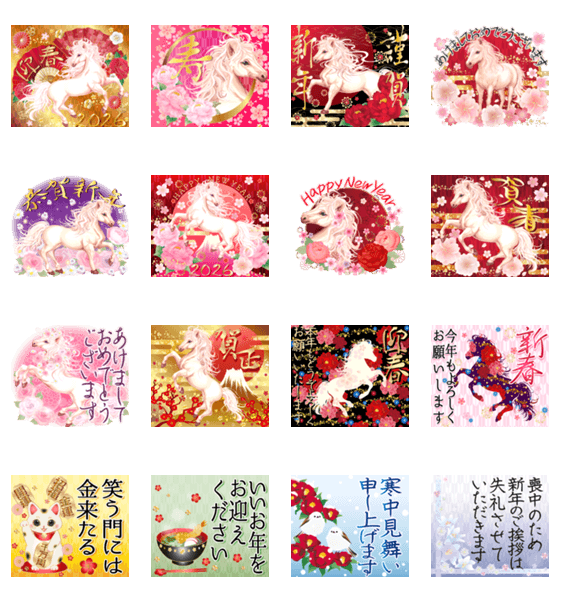 白馬の華やか飛び出す大人年賀状 2026 午年 -LINEスタンプマニア
