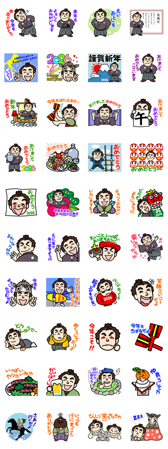 土佐弁の愉快なお侍たち15|2026年賀修正版 -LINEスタンプマニア