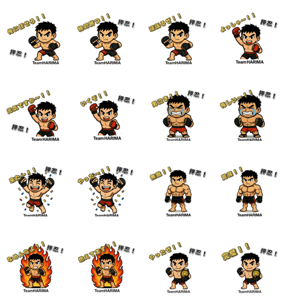 | スタンプ説明 | Team HARIMAの公式キャラクター「ハリマくん」スタンプ第2弾。 ファイトパンツ姿で、気合い・勝利・感情表現など、試合や日常で使いやすいスタンプを揃えました。 |