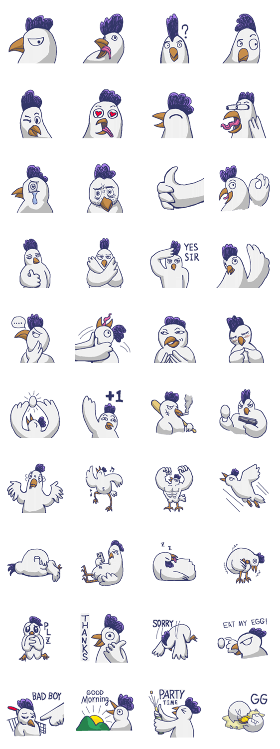 | スタンプ説明 | Blue white chicken1 new update |