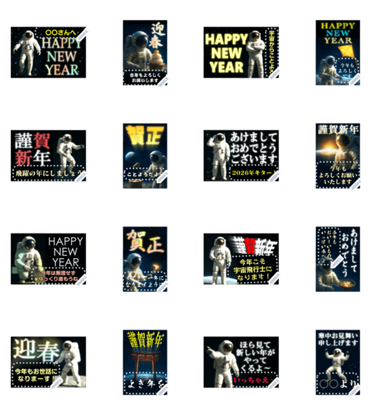 文字入力できる♥宇宙飛行士の年賀状 -LINEスタンプマニア