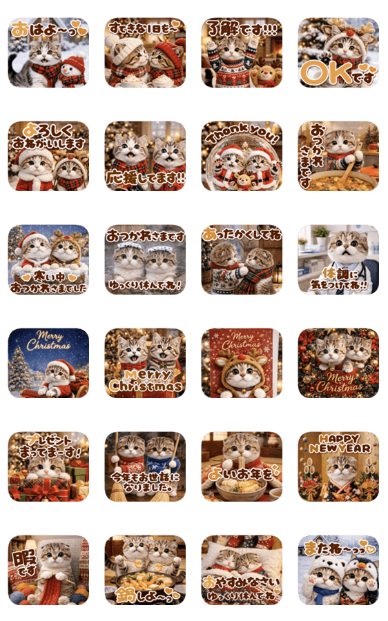 冬の毎日とクリスマスに大活躍♡かわいい猫にゃんこの冬スタンプです。