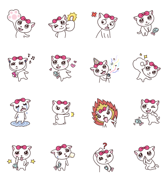 白ネコのあいうえお・・・ってるスタンプ