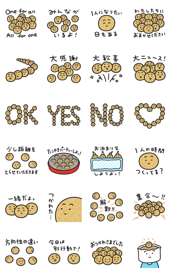 | スタンプ説明 | 全員で100匹以上いる。基本は群れで生活しているが、方向性の違いで別行動する時も多々ある。噛めば噛むほど味のある、個性的な軍団である。 |