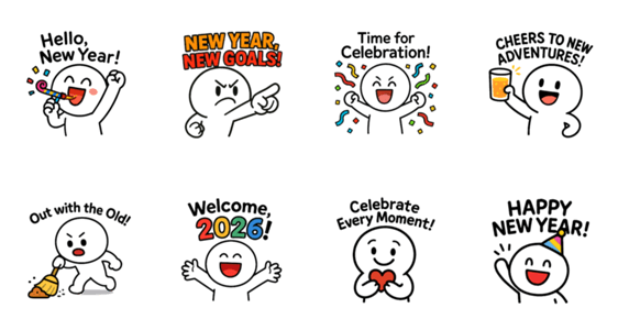 Ring in 2026! This cute, round-faced character is ready to celebrate! Share your New Year goals and toast to new adventures with festive chats!