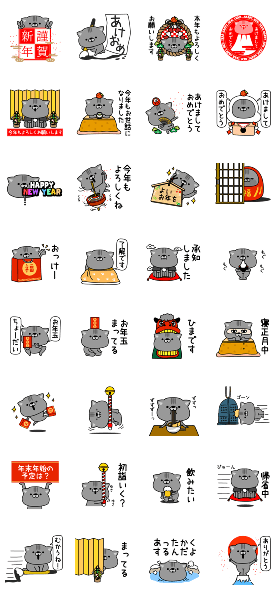 にゃむ猫ちゃぽ新年正月の挨拶 -LINEスタンプマニア