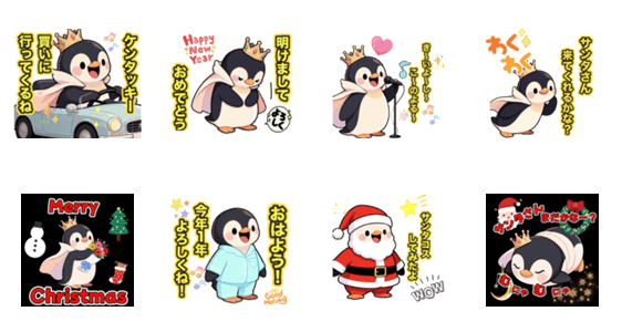 南極の王子イリオのクリスマス、年始に使えるスタンプです。 日常でも使えるタイミングはあると思います。