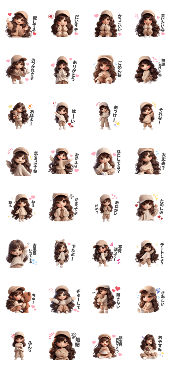 カップルで使いやすいスタンプです♡ カップル/彼女/彼氏/同棲/連絡/使いやすい/日常/毎日/挨拶/女の子/ギャル/韓国系/キャップ/可愛い/ラブラブ/恋人/甘え/記念日