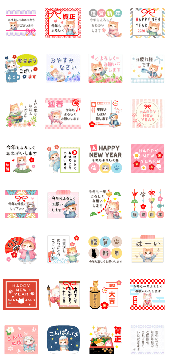 猫がいっぱい♡カラフル可愛いお正月2026 -LINEスタンプマニア