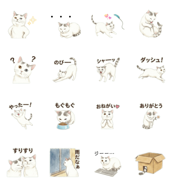 白ネコのあいうえお・・・ってるスタンプ