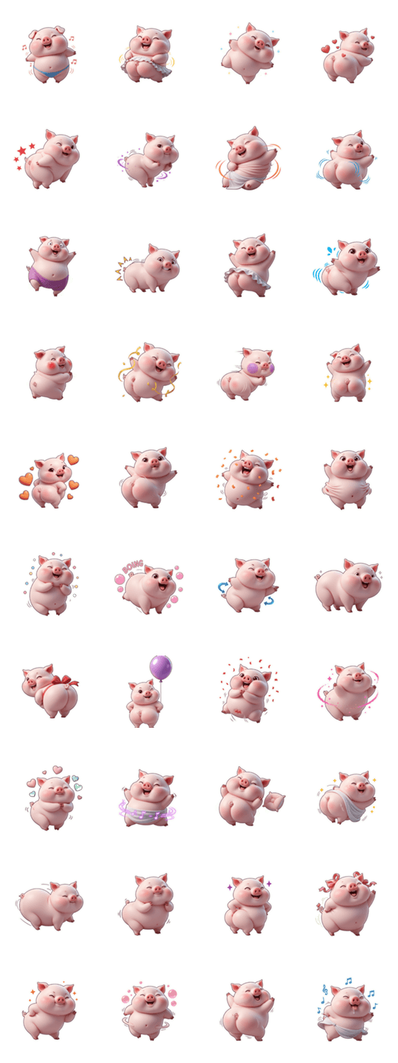 | スタンプ説明 | プリプリのお尻がチャームポイントのピンクのブタさん!精一杯、かわいらしさをアピールしています。頑張ってぶりっ子している姿が、たまらなく愛おしい!あなたのトークを |