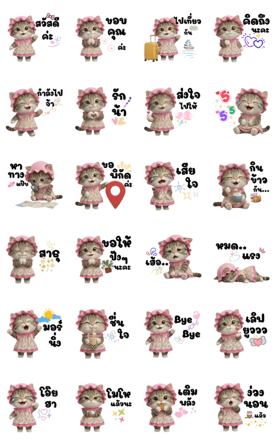 Meet the adorable tabby cat in a sweet pink bonnet! She is ready to share her daily life, travel moments, and yummy treats to brighten up your chats
