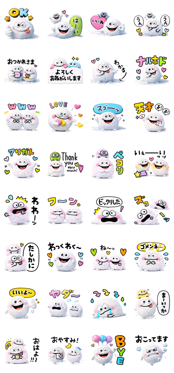 雪の妖精達のあいづちスタンプ♡ 毎日使える言葉も満載です♪寒くても元気な雪の妖精たちに元気をもらえるスタンプセットです。