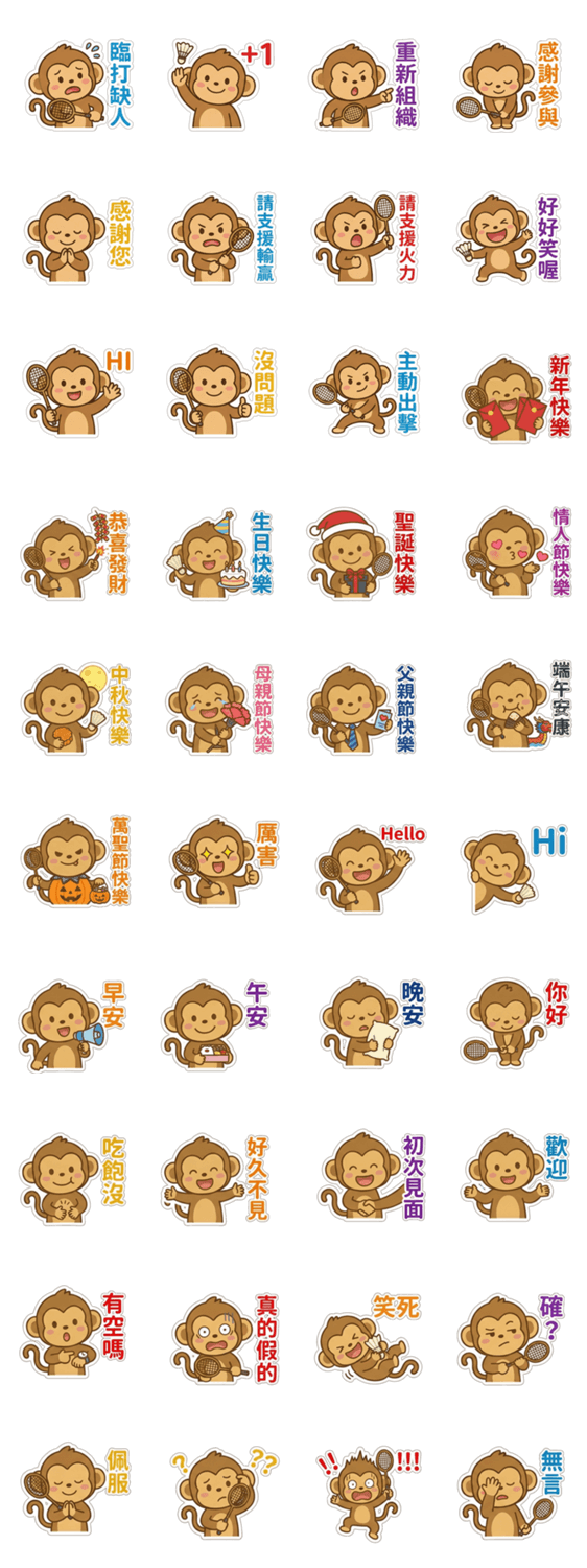| スタンプ説明 | A little monkey who lives for badminton! These stickers capture the real emotions of players, let the monkey speak for you! |