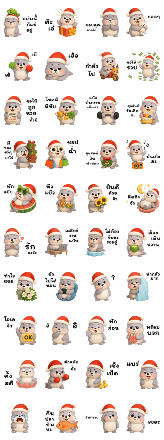 Manping: A Grey Seal Wearing a Santa Hat -LINEスタンプマニア