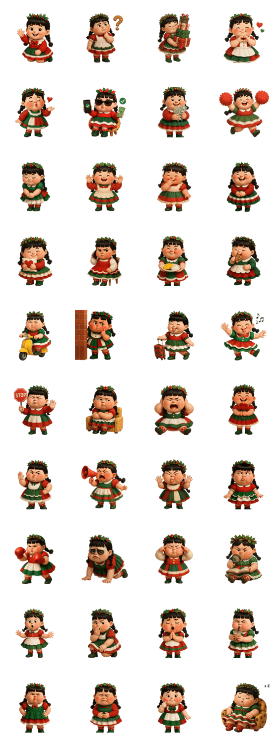 Little Kana, with her mischievous face, is wearing a Christmas-themed dress.