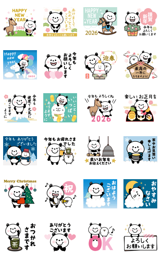 パンダさん・飛び出す年末年始(うま年) -LINEスタンプマニア