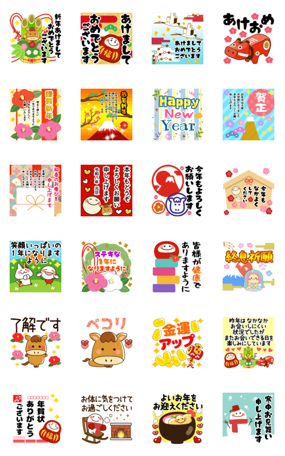| スタンプ説明 | とび出す年末年始と正月★期間限定だったスタンプの2026年用修正版/午年/馬/新年挨拶/賀正/謹賀新年/干支/お正月/年賀状/年賀/令和8年/あけおめ/寒中見舞い/山田まぽん作 |