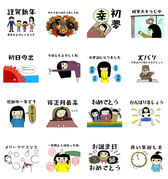 新年の挨拶や誕生日などの よく使うスタンプです。