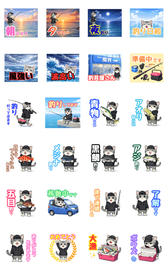 猫好きな釣り人に❤️ 陸っぱりの釣りで使えそうなスタンプを作ってみました‼️