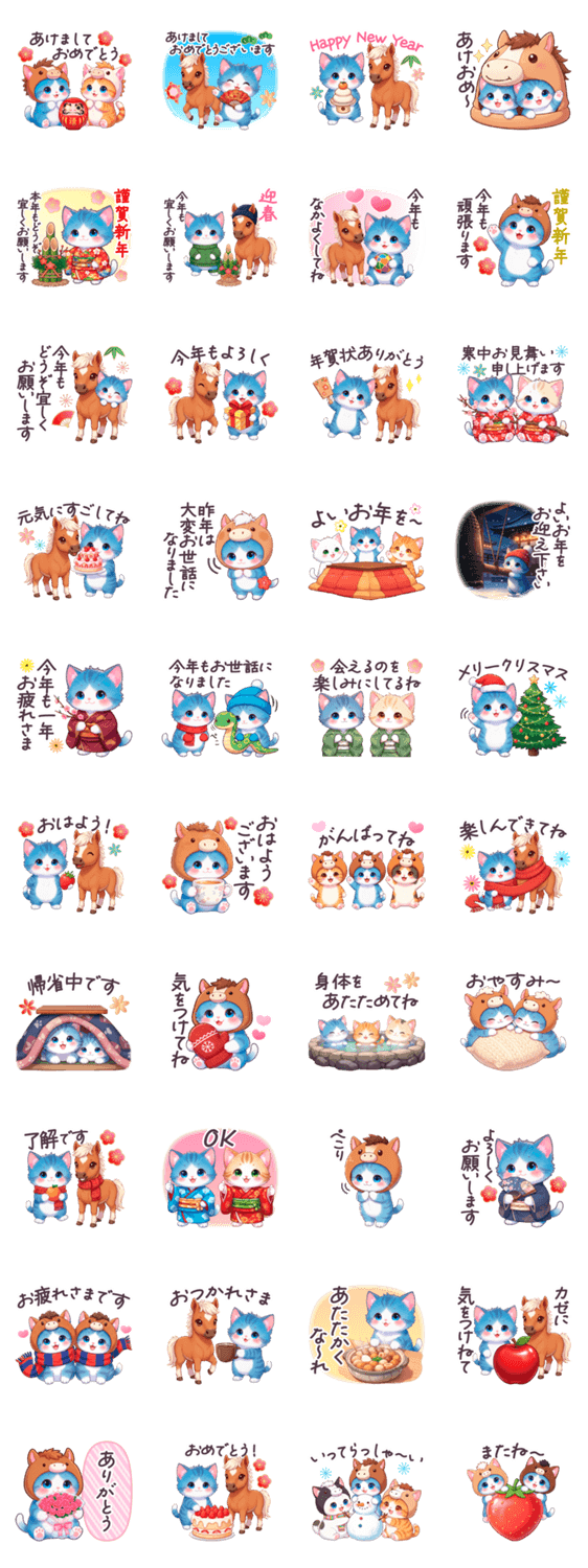 冬 年賀状 2026年 午年 ねこと馬 年末年始 -LINEスタンプマニア