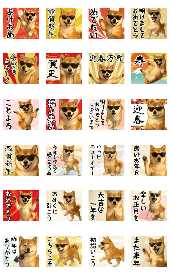 サングラスした柴犬 あけおめスタンプ -LINEスタンプマニア