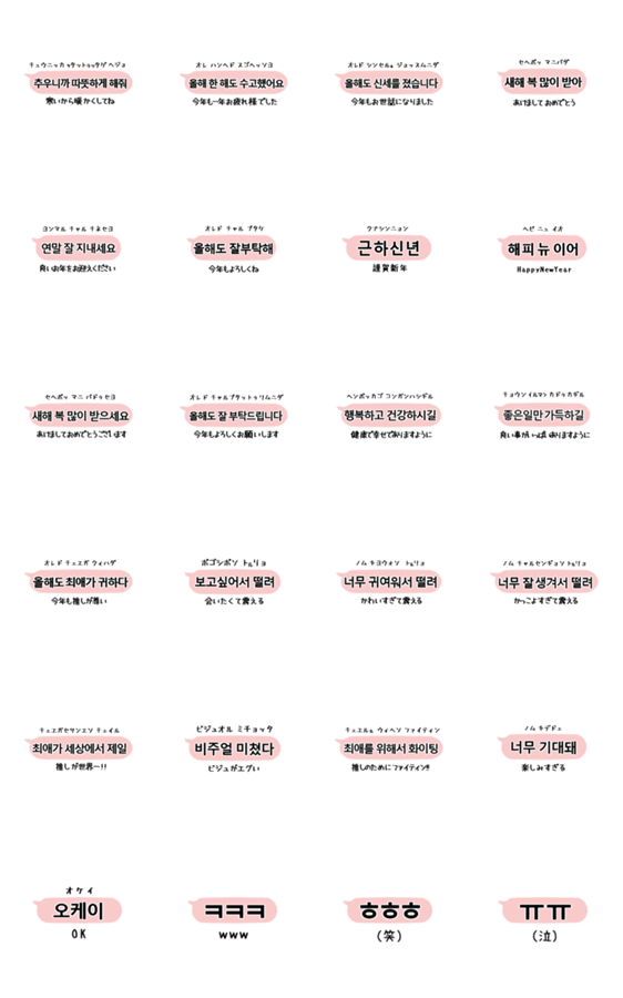 日本語と韓国語(読み方付き)吹き出しスタンプ 推しがいる生活 推し活 推し事 推しが尊い 推沼 おたく オタク 年末年始 お正月 あけおめ 冬 敬語☆★動くver.も販売中★☆